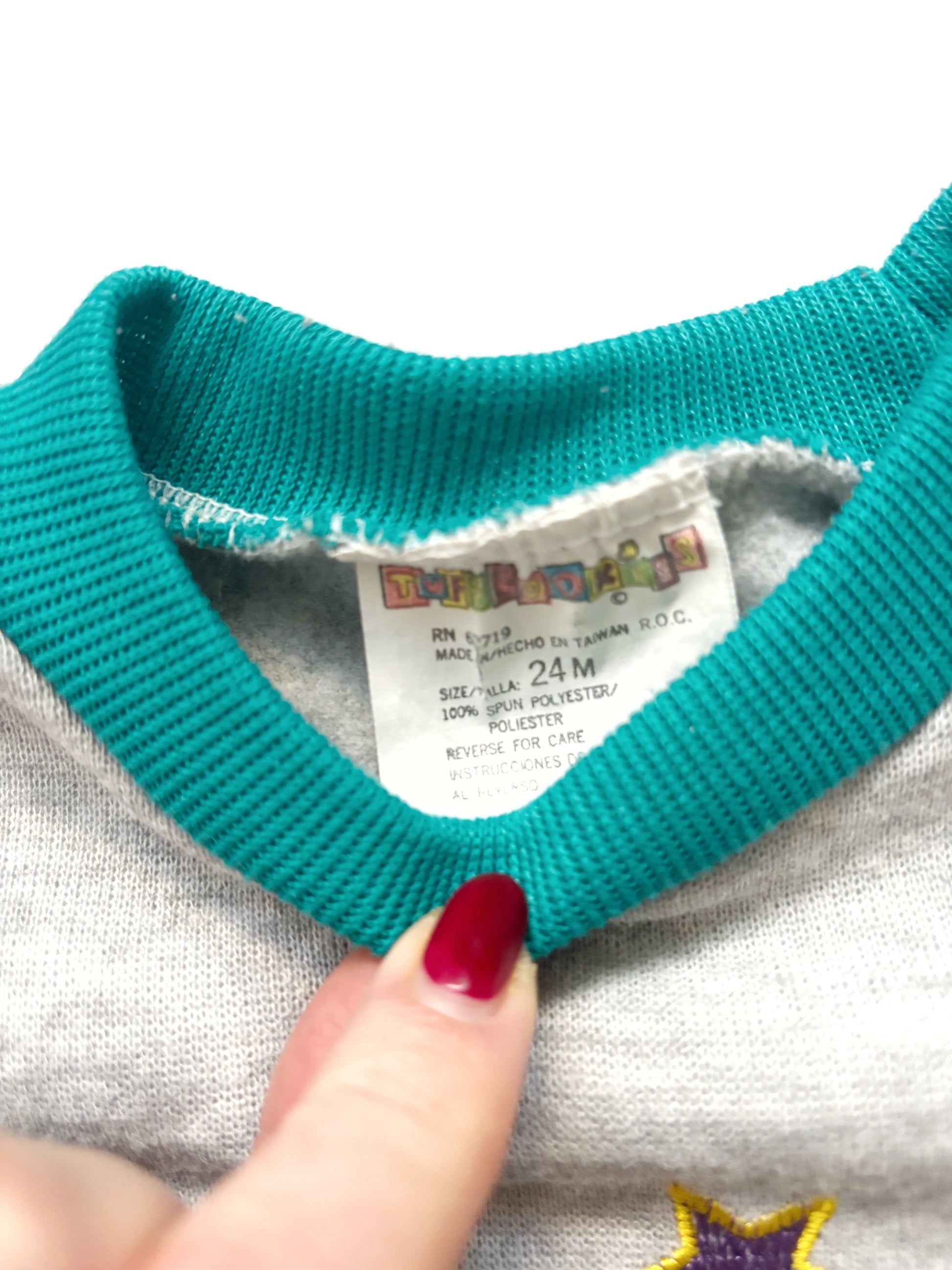 Really cute little jumper in great vintage condition apart from on tiny hole (as shown in images). This is from American stock, it’s from the 90’s. Tag says 24 months but I’d say it’s definitely on the smaller side and would measure up to an age 12 months. Really cute & unique.