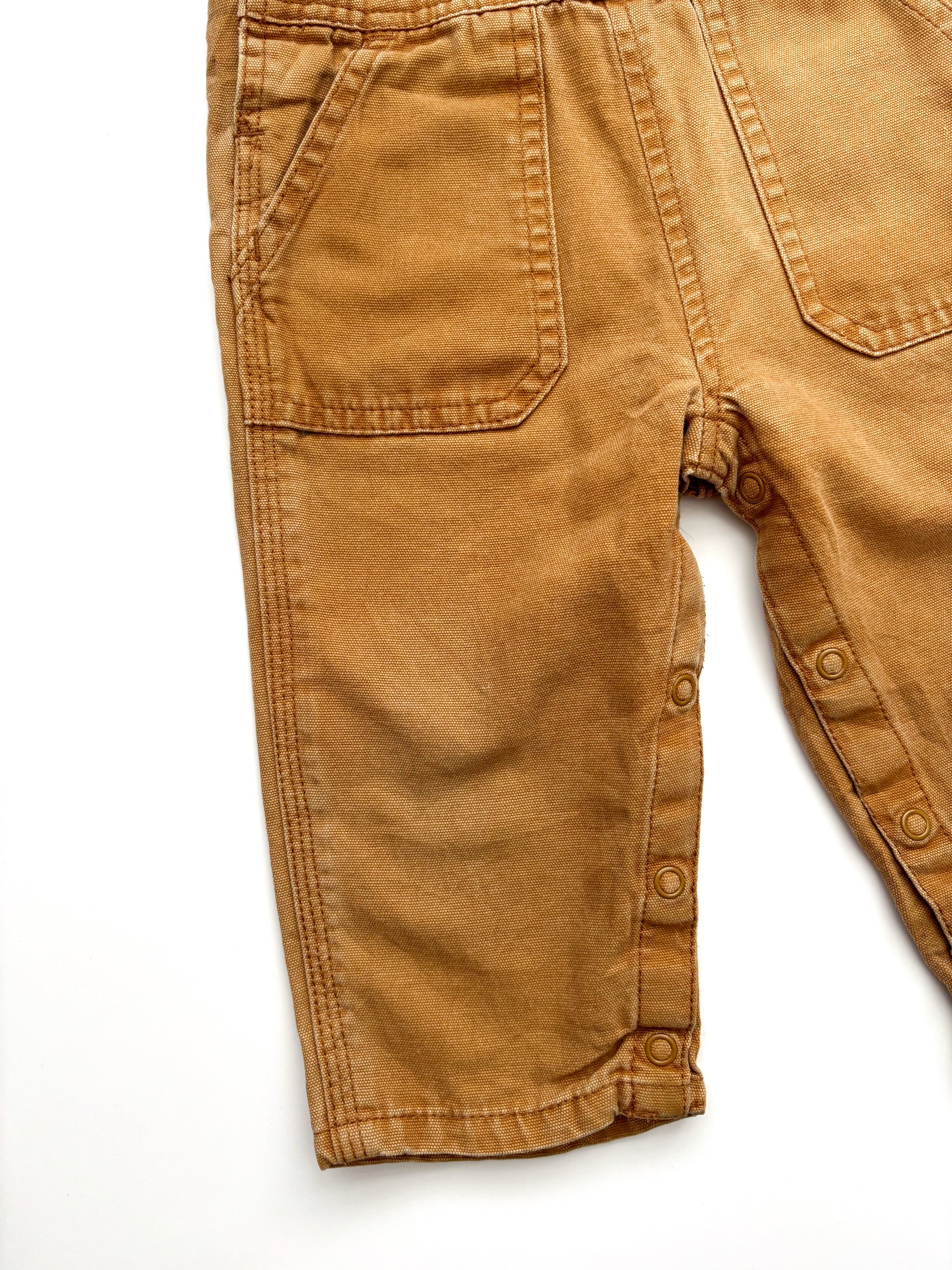 Lovely little Carhartt dungarees in tan. Few faint signs of wear & slight damage to the Carhartt badge but overall good condition. Cool to a little ones wardrobe. Age 12 months.