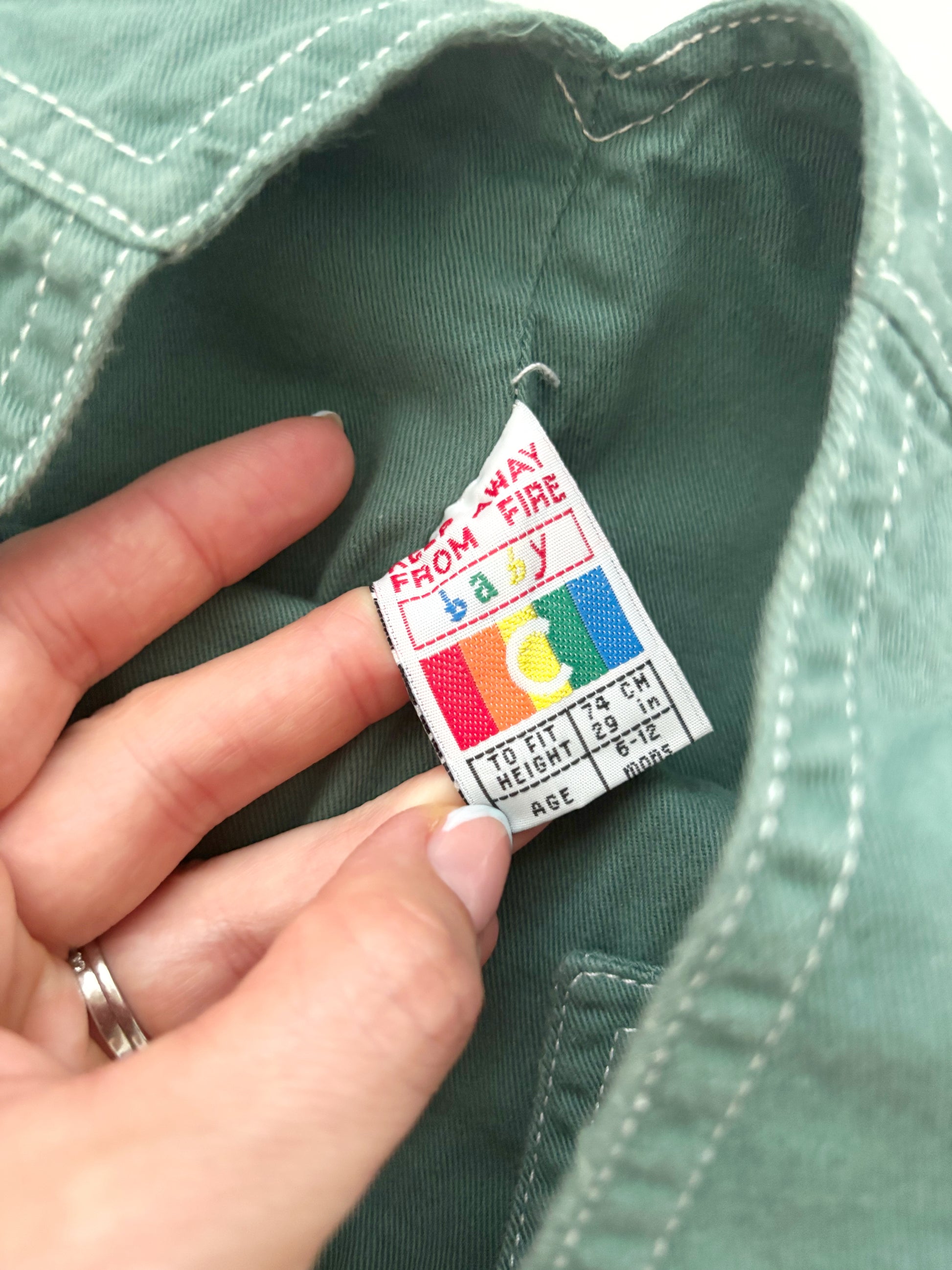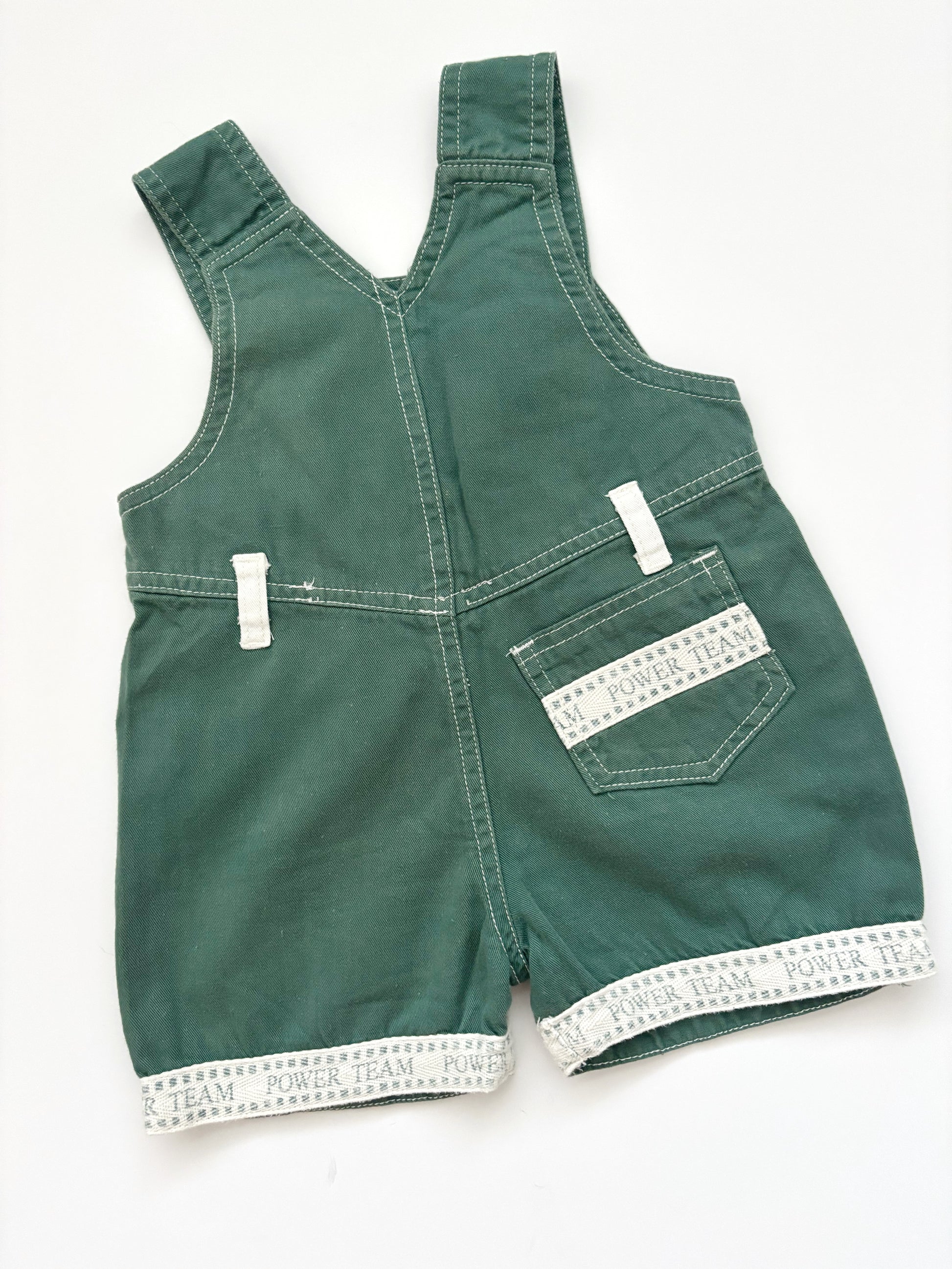 Green Vintage “Power Team” Dungarees Age 6-12 Months