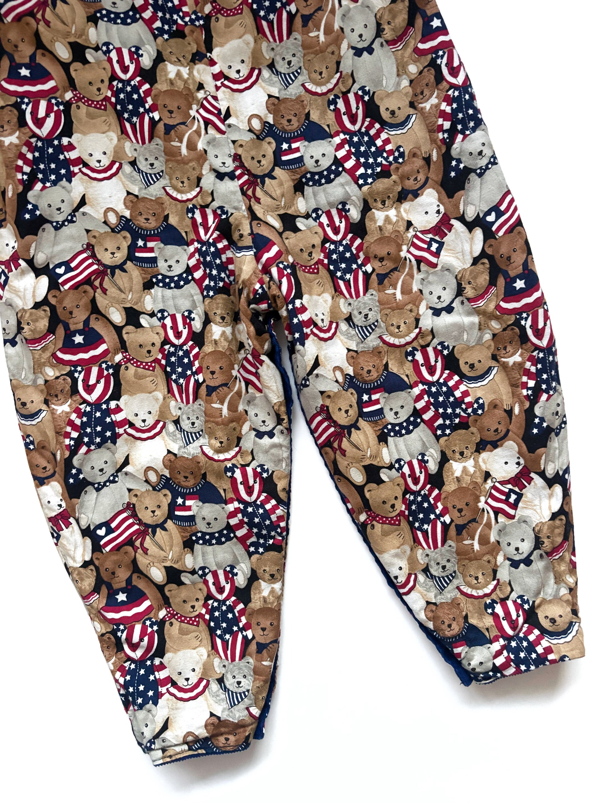 Unbelievable little jumpsuit. Age 2-3 Years (But would look oversized) Reversible 1996 Heartland Bears print on one side, Navy corduroy on the other. I adore this! So cute & unique!