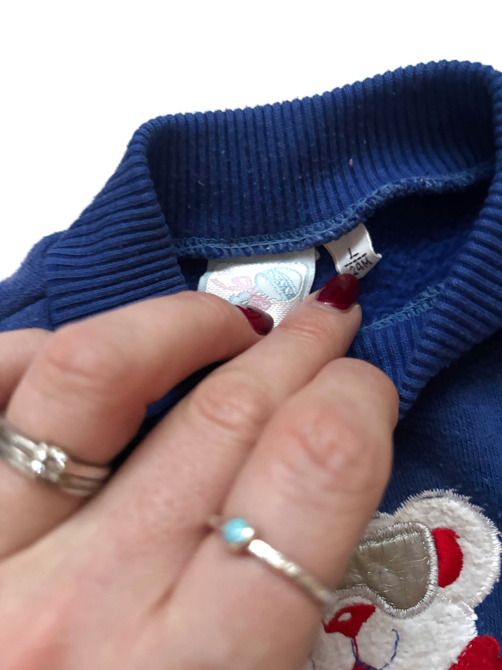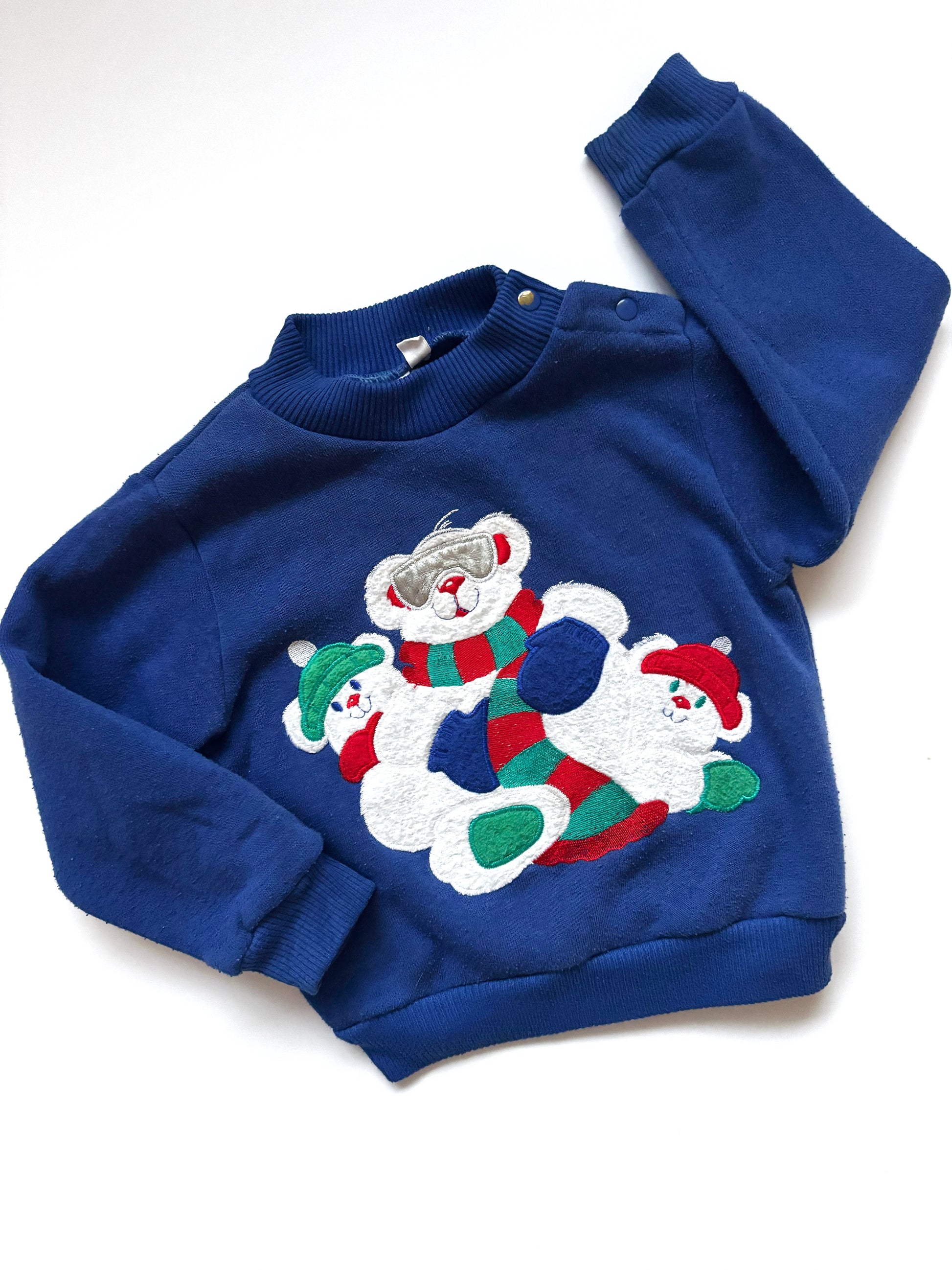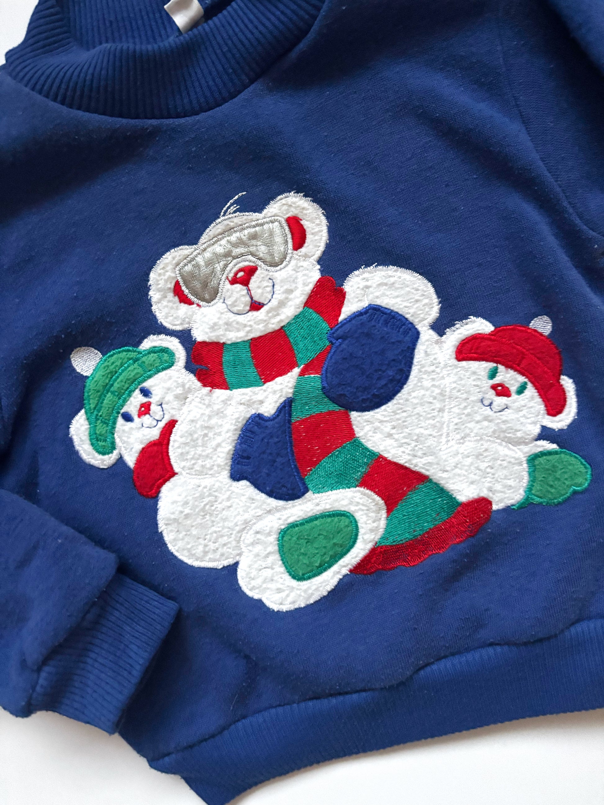 This is a really old (probably 80’s) vintage festive jumper. It has signs of wash wear and bobbling but it’s really unique. It was sourced all the way from America and is rare. It’s tagged at 24 months but I’d say it’s more of a 12-18 months.