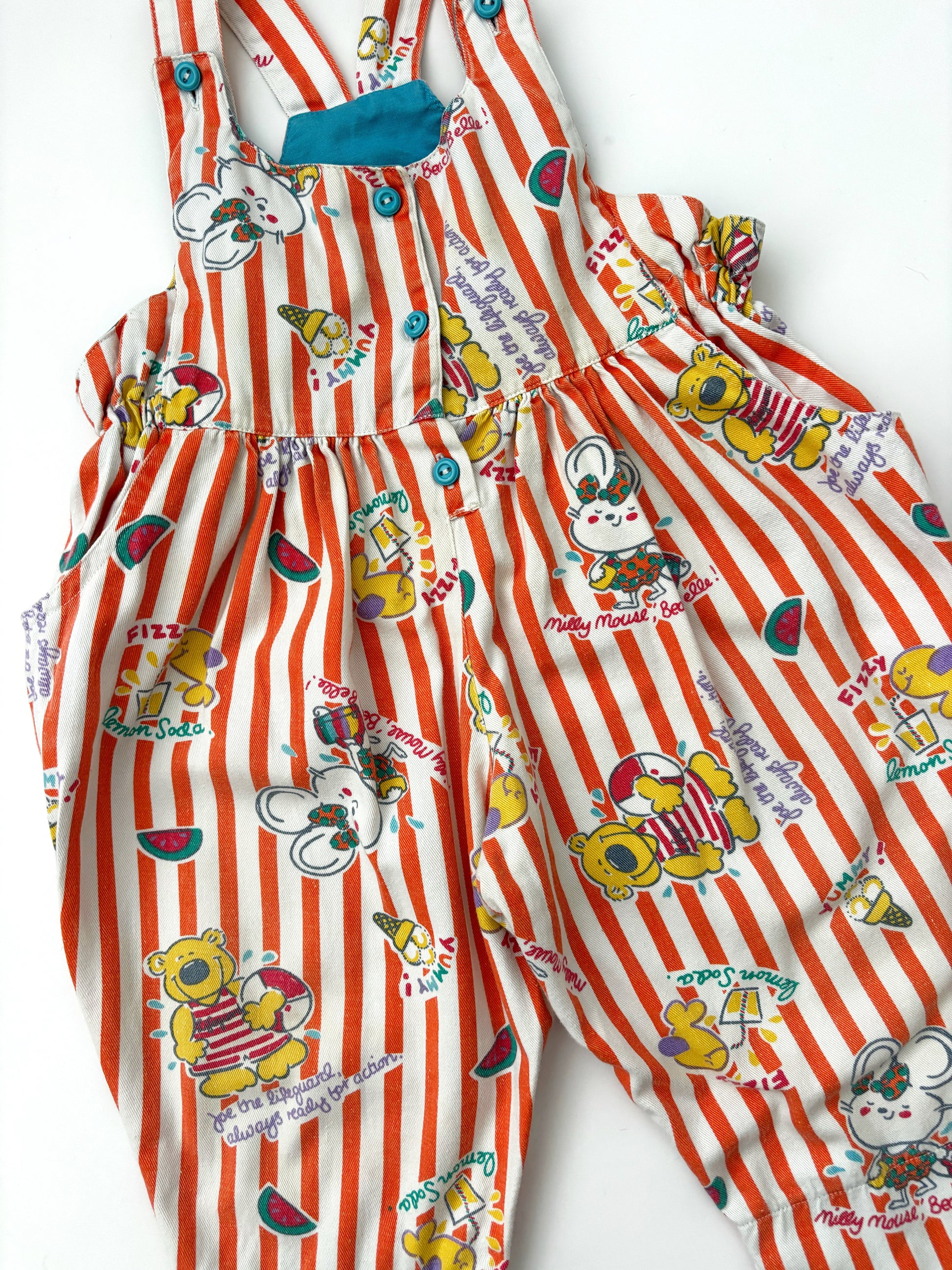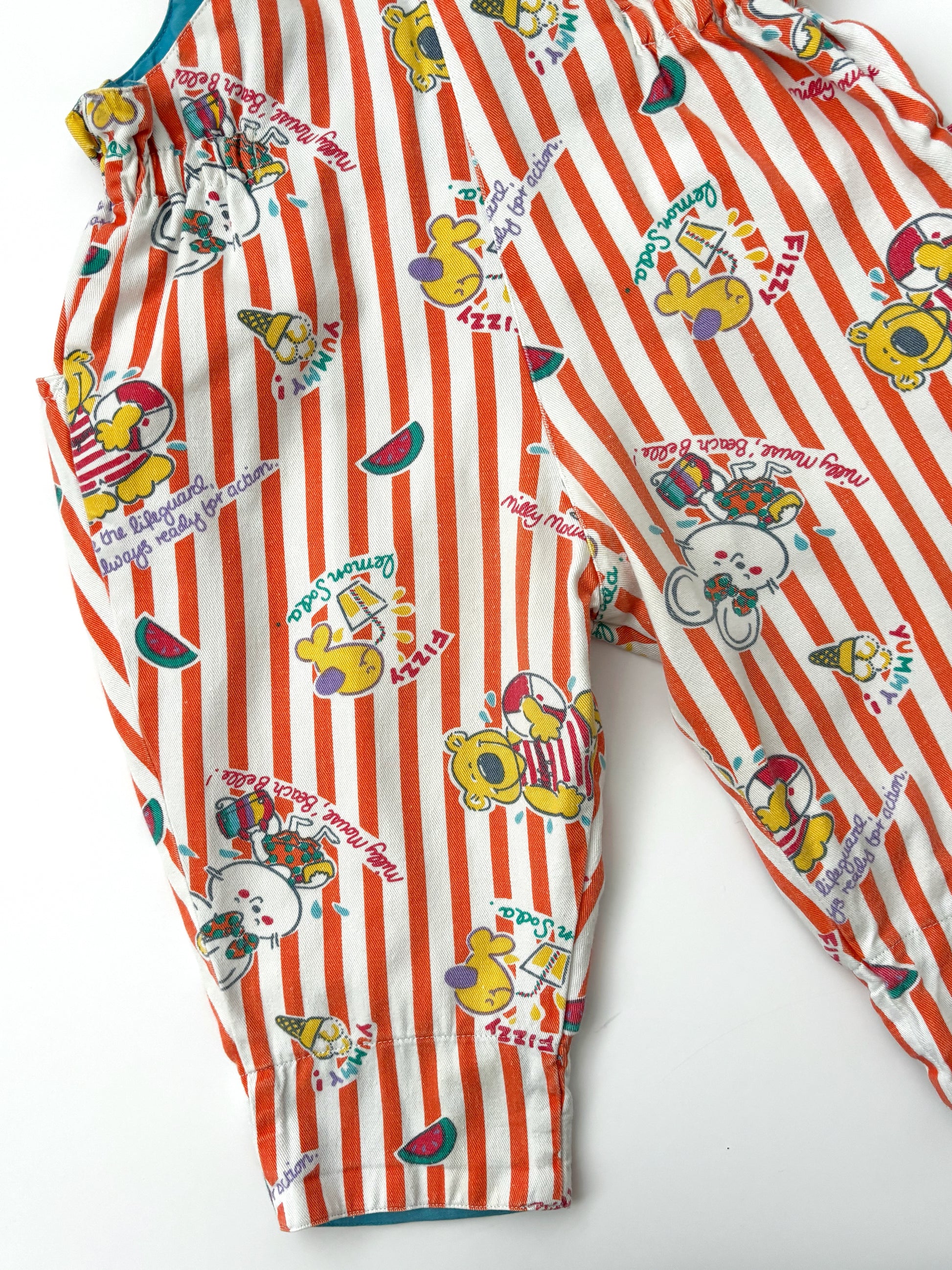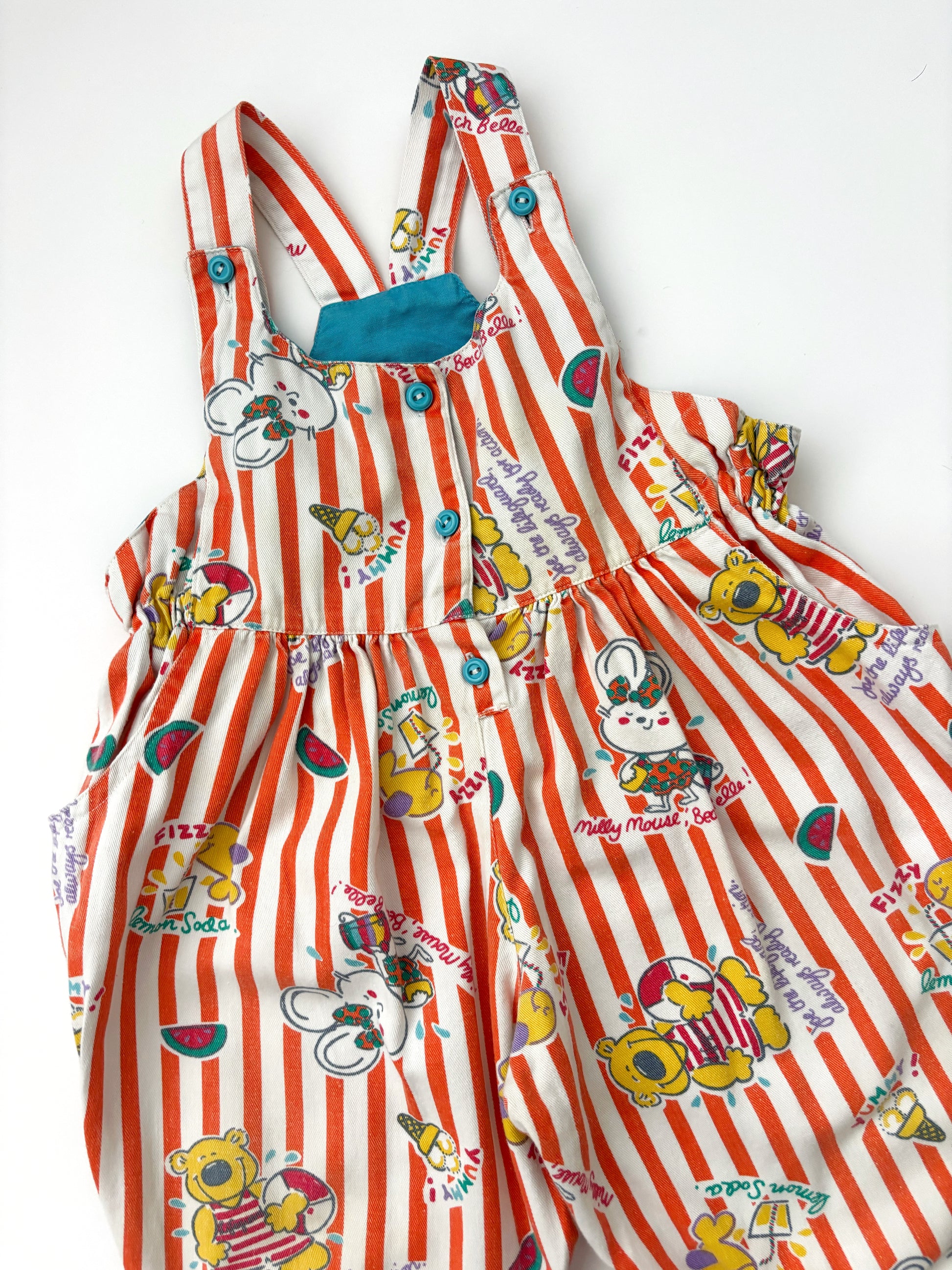 Unbelievable dungarees! These are definitely one of my favourite finds to date! Extremely rare and beyond cute! There are a couple of small marks on these and a slight discolouration to a small section of to the bib, but despite this… they’re still amazing, it’s not really noticeable as the print is so amazing!! Age 12-18 months!